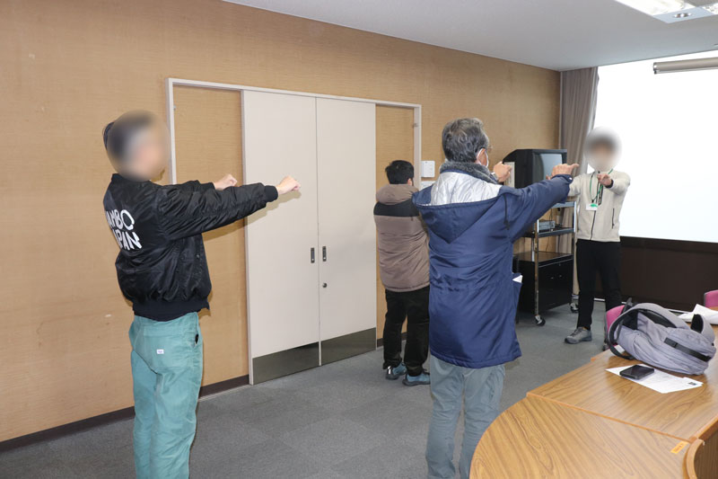 最初は筆記試験ではなく、体がきちんと動くかの確認です。
