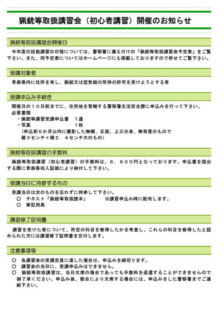 猟銃等取扱講習会(初心者講習)の申し込み方法