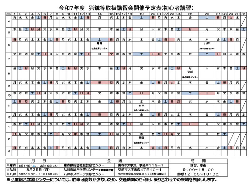 「来年度(令和8年度)の初心者講習の予定は、