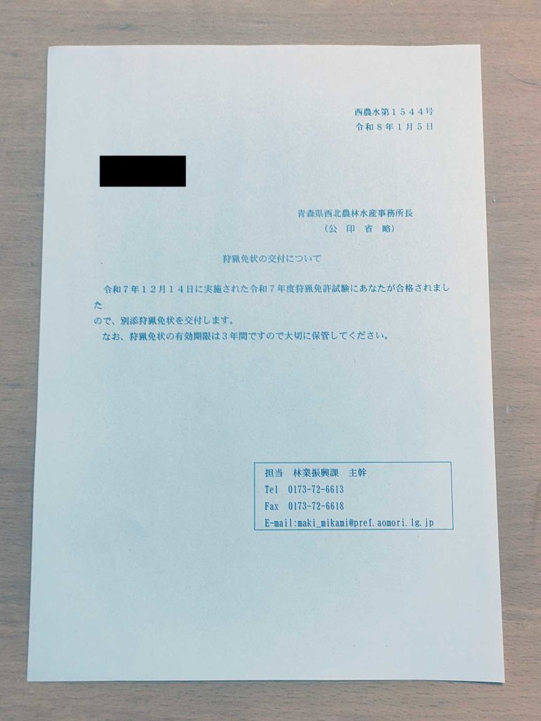 狩猟免状が、ついに自宅に届いたのです。