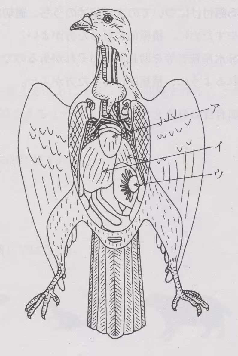 問13:鳥類の内臓を示した次の図のうち、肝臓はどれか。