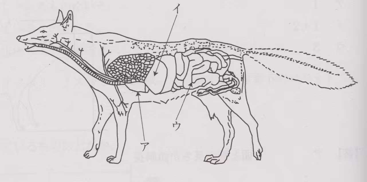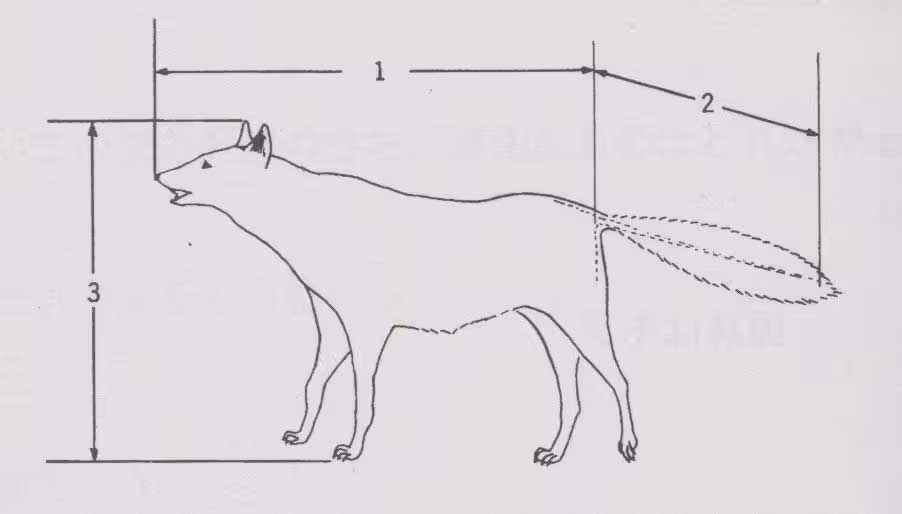 問11:獣類の全長の測定位置を正しく示しているものはどれか。