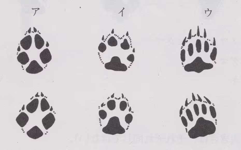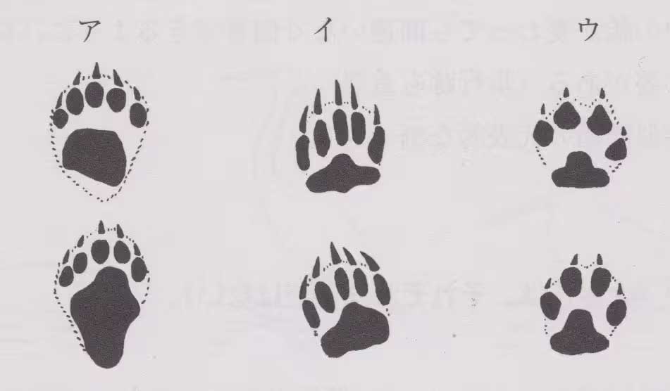 問63:ツキノワグマ・ヒグマの足跡はどれか(大きさは、それぞれ同じではない)。