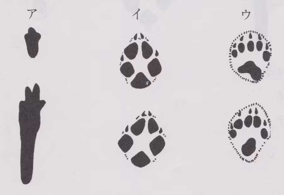 問62:ノウサギ・ユキウサギの足跡はどれか(大きさはそれぞれ同じではない)。