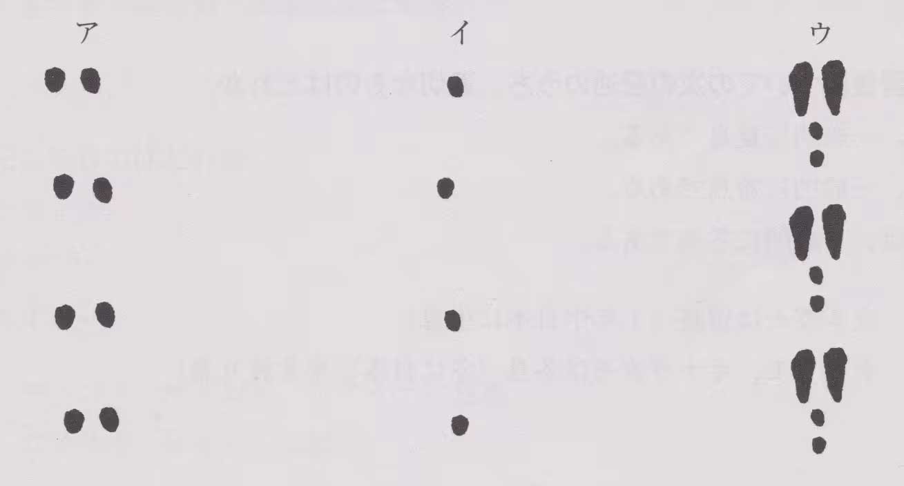 問66:獣類の歩いた跡を示した次の図のうち、キツネが歩いた跡として適切なものはどれか。