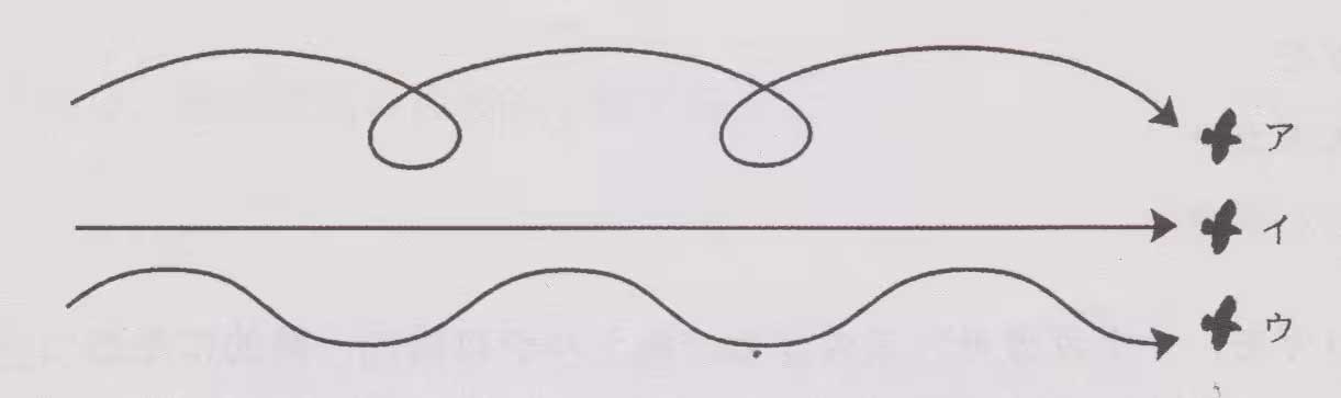 問78 鳥の飛び方についての次の図のうち、ヒヨドリの飛び方として適切なものはどれか。
