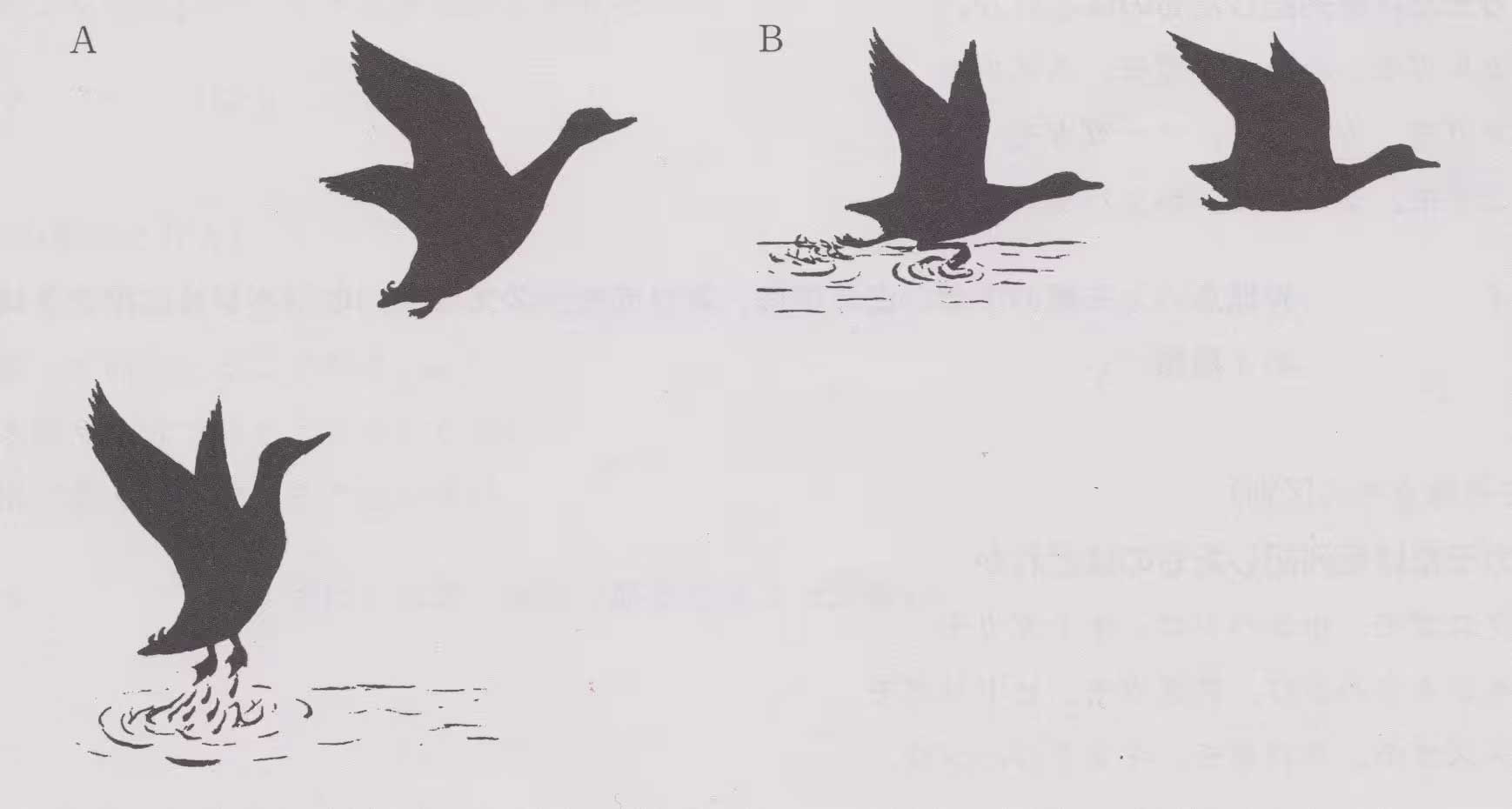 問81 カモ類の飛び立ち方についての次の記述のうち、適切なものはどれか。